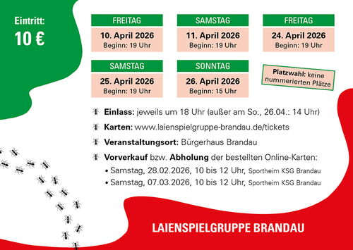 Wir freuen uns riesig, euch im Bürgerhaus Brandau begrüßen zu dürfen. Freut euch auf einen Abend voller turbulenter Szenen und bester Unterhaltung mit unserem Stück „Nix amore am Lago Maggiore“. Während wir hinter den Kulissen noch fleißig proben und der Premiere entgegenfiebern, könnt ihr euch bereits jetzt eure Plätze sichern.